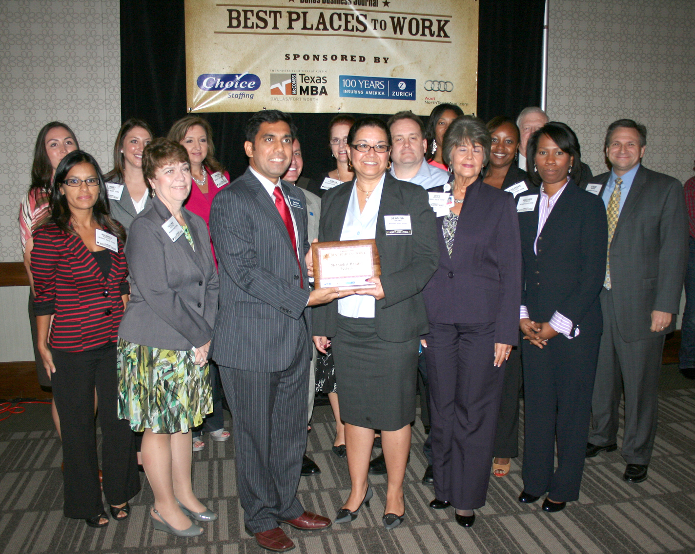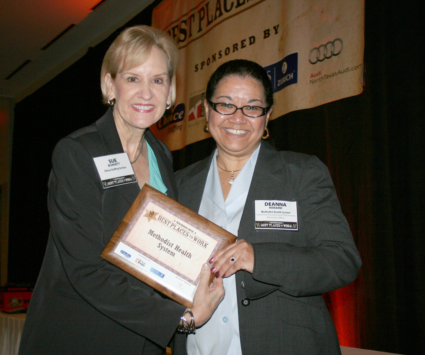 Deanna Kenard, Senior Vice President & Chief Human Resources Officer (right), accepts the 2012 Best Place to Work award for Methodist